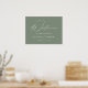 Sinal de boas-vindas do casamento elegante com "Bem-vindo" em um roteiro branco de caligrafia moderna com um fundo verde sábio (ou cor de sua escolha). Personalize a poster do casamento adicionando seus nomes e a data do casamento. A placa de boas-vindas do casamento verde de sábio foi projetada para coordenar com a nossa coleção de casamento do Modern Elegance e está disponível em outras cores.