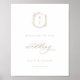 Monograma do Crest Botânico, sinal de boas-vindas ao casamento poster. Vintage inspirou crista adornada com galhos botânicos. Recursos, elegante e elegante estilo de tipografia bege, design, combinação de script e tipo negrito.
