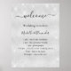 Esta poster é perfeita para comemorar seu dia especial, e desejar boas-vindas aos seus convidados. O poster tem uma elegante cor prateada escura com uma fonte preta de estilo escrita com letra de estilo escrita escrita escrita à mão. Personalize e adicione seus nomes e sua linha do dia do casamento.