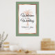 Personalize este sinal de "Bem-vindo ao nosso Casamento" verde-sábio e rosa dourado com seu próprio toque especial. Este design moderno apresenta um roteiro moderno, texto preto e rosa, dourado, incluindo os nomes da noiva e do noivo e a data do casamento, uma palmeira artística e um quadro metálico de ouro-rosa, sobre fundo verde-sábio. Se precisar de ajuda ou itens correspondentes, entre em contato comigo.