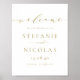 Bem-vindos aos seus convidados de casamento com este elegante sinal de boas-vindas. Este símbolo personalizável de boas-vindas do casamento apresenta um roteiro de ouro com tipografia clássica sobre fundo branco. Personalize adicionando nomes, data de casamento e muito mais.