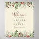 Este Poster de Sinais de Boas-vindas apresenta galhos e folhas de floresta verde-aquarela, bagas brancas e elegantes roteiros de tendências. Perfeito para o casamento no inverno.