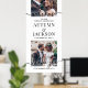 Bem-vindos convidados de casamento à sua cerimônia ou recepção com uma elegante poster vertical. As fotos e o texto deste modelo de sinal baixável são simples de personalizar (DICA DE IMAGEM: Uma maneira fácil de posicionar uma foto exatamente como você deseja é recortá-la antes de carregá-la no site do Zazzle.) O moderno design preto e branco minimalista apresenta duas imagens de sua escolha, caligrafia com script de estilo manuscrito, tipografia elegante de vintage, e mensagens personalizáveis que leram "bem-vindos à nossa celebração de casamento" e "obrigado você por compartilhar nossa alegria." Este poster imprimível é uma na moda para compartilhar fotos do noivado enquanto adiciona um toque personalizado às suas decorações do dia especial. Parabéns para a noiva e o noivo!