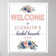 Cartaz de Boas-vindas de Chuveiro de Noiva com Balões Rosa Azul Naval Floral em Dourado Rose