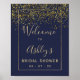 Boas-vindas de chá de noiva azul-marinho confete dourado chique