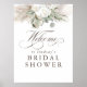 Cartaz de boas-vindas de chá de noiva com grama das pampas e flores brancas