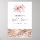 Cartaz de boas-vindas de chá de noiva trendy com rosas cor-de-rosa e brancas e renda com acentos de folha de ouro rosa projetado para ser personalizado rápida e facilmente para os detalhes do seu evento.