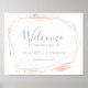 Este poster de boas-vindas geométricas de rosa dourado é perfeito para um casamento elegante. A design de whimsical apresenta uma cor-de-água cor-de-rosa pincelada neutra com lindas formas geométricas de folha de rosa de ouro falsas e brilhando. Personalize o poster com o nome da noiva e do noivo, e a data do casamento.