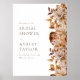 Cartaz de Boas-vindas do Chá de Noiva de Outono. Este cartaz elegante apresenta uma bela moldura de folha de ouro real e folhas de laranja queimada e terracota pintadas à mão em aquarela boho, dálias creme e bege, e belas rosas cor de ferrugem em um fundo branco. Encontre itens correspondentes na Coleção Chá de Noiva Romance de Outono.