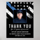 Este design apresenta uma bandeira da polícia com listras pretas e brancas, e uma fina faixa azul de linha também. Esta design é excelente por mostrar apreço a um oficial comemorando um aniversário ou agradecendo a um oficial polícia aposentado, xerife, capitão ou chefe por seus anos de serviço. Personalize ainda mais com uma foto do policial aposentado.