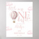 Este charmoso letreiro de boas-vindas de primeiro aniversário apresenta um lindo balão de ar quente rosa e nuvens, juntamente com uma tipografia elegante. Concebido por Thisisnotme©