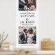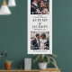 Bem-vindos convidados de casamento à sua cerimônia ou recepção com uma elegante poster vertical. As fotos e o texto deste modelo de sinal baixável são simples de personalizar (DICA DE IMAGEM: Uma maneira fácil de posicionar uma foto exatamente como você deseja é recortá-la antes de carregá-la no site do Zazzle.) O moderno design preto e branco minimalista apresenta duas imagens de sua escolha, caligrafia com script de estilo manuscrito, tipografia elegante de vintage, e mensagens personalizáveis que leram "bem-vindos à nossa celebração de casamento" e "obrigado você por compartilhar nossa alegria." Este poster imprimível é uma na moda para compartilhar fotos do noivado enquanto adiciona um toque personalizado às suas decorações do dia especial. Parabéns para a noiva e o noivo!