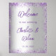 Um fundo com aparência de prata falsa, decorado com faíscas de brilho violeta e lavanda. Bem-vindos ao nosso casamento. Personalize e adicione seus nomes.