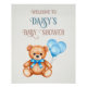 Bem-vindos convidados ao seu chá de fraldas em estilo com este adorável sinal de boas-vindas ao ursinho de pelúcia. Apresentando um urso de aquarela e tons azuis suaves, é uma bela primeira impressão que dá perfeitamente o tom para uma celebração acolhedora e memorável.