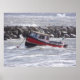 Pequeno barco de pesca em âncora. Capturado em condições meteorológicas difíceis.