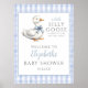 Poster Bobo Pequeno ganso Chá de fraldas Azul Sinal de bo