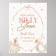 Um ganso bobo está comemorando seu aniversário! Este design de sinal de boas-vindas apresenta um design cor-de-rosa com arcos cor-de-rosa, margaridas e pequenos gansos com estilo coquetel.