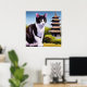 Gatos viveram ao lado do homem por milênios. Mostre ao mundo sua paixão por gatos com este retrato de um Bobtail japonês em frente a um pagode. Excelente para todos aqueles amantes de gatos lá fora.