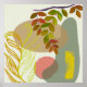 Design boho botânico com cor magenta, verde, amarela e marrom e elementos florais.