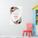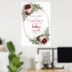 Poster Boho Borgonha Flores Dourado Bem-vinda ao Chá de B