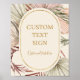 Este sinal personalizado boho tropical botânico | cartões marfim e presentes é perfeito para o seu casamento elegante rústico floral, verde, pêssego, dourado-rosa. O design apresenta uma moldura dourada ou buquê com grama de pampas rosa moderno, simples sage, marfim, folha de palmeira champanhe e folhagem de praia clássica. As flores podem incluir rosa rosa e orquídea. O design é ideal para um casamento clássico vintage terracota, bege, ferrugem, inverno, primavera, outono. Por favor, encontre outros materiais de papelaria de casamento correspondentes ou coordenados no restante do conjunto da coleção.
