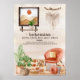 Cena de decoração da casa da Boêmia com uma poltrona moderna do século médio com travesseiros e suas pantufas favoritas, algumas plantas e um tapete com uma foto na parede e uma macrame pendurada. Esse design boho-chic inclui a definição de boêmia. Design composto por Designs Holiday Hearts.