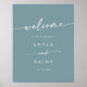 Este sinal de boas-vindas do casamento do boho chic seafoam teal DIY é perfeito para um casamento minimalista. A colorida design boêmica verde-azul apresenta uma caligrafia rústica simples com um estilo único, porém clássico, que lembra a praia, o oceano e o litoral de verão. Personalize seu sinal de boas-vindas imprimível com os nomes do casal e a data. Escolha um poster de sinal de boas-vindas impresso ou um download instantâneo imprimível que você pode impressão localmente como um projeto DIY.