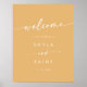 Este sinal de boas-vindas do casamento do boho chic yellow marigold DIY é perfeito para um casamento minimalista. A design boêmica moderna, colorida e amarela brilhante, apresenta uma caligrafia rústica simples com um estilo único, mas clássico. Personalize seu sinal de boas-vindas imprimível com os nomes do casal e a data. Escolha um poster de sinal de boas-vindas impresso ou um download instantâneo imprimível que você pode impressão localmente como um projeto DIY.