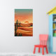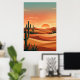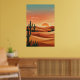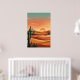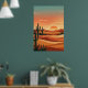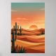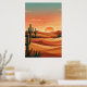 Poster Boho Desert Sunset Dunes with Cactus & Flying Bird