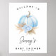Boho Floral Boho Chá de fraldas de Pumpkin Azul Poster Doce de Boas-vindas Convite para chá de fraldas temático de abóbora simples com uma abóbora azul e um arranjo floral boêmico com rosas azuis, grama-pampas e folha de palma. Este moderno sinal de boas-vindas do chá de fraldas de abóbora floral de boho é uma maneira fofa de cumprimentar os convidados ao chá de fraldas de outono de um menino.