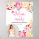 Sinal de boas-vindas da graduação floral do biquíni cor-de-rosa primavera, com pintura manual bonito, de cor-de-água floral, cor-de-rosa brilhante, amarela, cor de laranja e verde-esmagadora e folhas e folhagem. Um bonito partido temido de noiva floral perfeito, para brunch ao ar livre, festa de jardim ou celebração de primavera