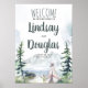 Montanhas de madeira aventura natural aventura casamento sinal de boas vindas poster