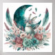 Coelhinho de Coelho Boho com cor lacrimejante e mauve moldada por lua crescente, penas e flores. Belo design floral misto perfeito para o quarto de berçário de bebês.