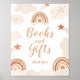 Este Chá de fraldas Books and Gifts Sign faz parte da coleção de chás de fraldas do Arco-Íris Boho caracterizada por gráficos giros do arco-íris e cores neutras que são adequadas para o garoto e a garota, ou chá de fraldas neutro em relação ao gênero. Este sinal é fácil de corresponder às suas cores.