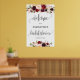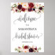 Boho rústico marsala floral chá de noiva bem-vinda placa 24x36 pôster grande formato,