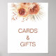 Sinal de mesa de chá de noiva boêmio floral moderno com um lindo arranjo floral laranja queimada com folha de palmeira e um título de caligrafia moderna em terracota