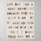 Um padrão geométrico de linhas opostas de triângulos recheados e esboçados numa paleta escura, esticada e marfim.