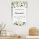 Poster Boho verde rosas brancas bem-vinda chá de noiva