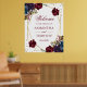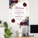 Elegante Boho Aquarela vermelha, roxa e azul Flores de inverno e design folhagem com estrutura geométrica dourada