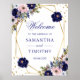Elegante Boho Watercolor e flores azuis escuras e design de folhagem de inverno com estrutura geométrica dourada