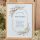 Esta vassoura-de-flor-silvestre azul empoeirada esta vela queima poster é um arranjo elegante de quadros geométricos de ouro clássicos embelezados com delicados buquês e caules florais florais. Apresentando uma paleta de fundo azuis poeirento e leve do eterno com uma típica tipografia negra clássica e flores silvestres coloridas, criando uma sensação romântica adorável e polida. Com a coordenação de estilos de minimalista casual a adornamentos maximalistas de luxo, esta coleção oferece opções fáceis de mistura e de combinação para curar sua estética de casamento personalizada perfeita. Tal como acontece com todos os nossos designs, se tiverem perguntas ou pedidos especiais, por favor, perguntem.