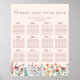 Esta tabela de assentos de casamento moderna e elegante apresenta flores silvestres de vassoura e espaço para você adicionar nomes de convidados para até doze mesas. O perfeito design floral neutro para primavera, verão ou casamentos outono. Se precisar fazer mais edições no design, selecione 'editar usando a ferramenta design' ou entre em contato comigo para obter mais suporte.