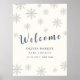 Sinal de boas-vindas do Chá de fraldas de floco de neve de inverno do Boho Blue Silver, Elegante minimalista. Projetado com floco de neve de cor d'água de cinza prateada. Coisas na nossa loja de Design de Aglow Urbano. Chá de fraldas de menina, chá de fraldas de bebê, bebê esperado em dezembro, janeiro. Chá de fraldas de inverno.