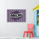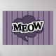 Bolha de fala roxa, gato diz miau, nuvem de fala roxa, design de pop engraçado