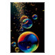 Uma ilustração digital de bolhas brilhantes com fundo preto. Coloração do espectro.