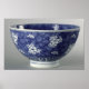 O Bowl da Escola Chinesa decorado com flor de cereja em fundo marmoreado, Qing Dynastia, 1662-1722, localizado no Guimet de Musee, Paris, França.