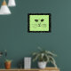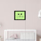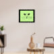 Este poster de arte é verde-claro com uma ilustração negra de um rosto de gato com bigodes longos e olhos verdes intensos. Tem uma borda preta com bolinhas verdes brilhantes.