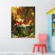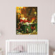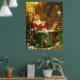 Um poster charmoso de natais vintages que mostra Papai Noel lendo listas de desejos cercados por seus elfos diligentes.