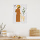 Trabalho de arte cristão minimalista do Bom Pastor segurando um funcionarios e parado com um cordeiro. Um lembrete pacífico da orientação e do cuidado de Deus.