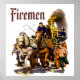 Um presente de excelente para o Homem de Fogo. O cavalo Vintage arrastou uma corrida de bombeiros para um incêndio com um jovem a correr ao lado.